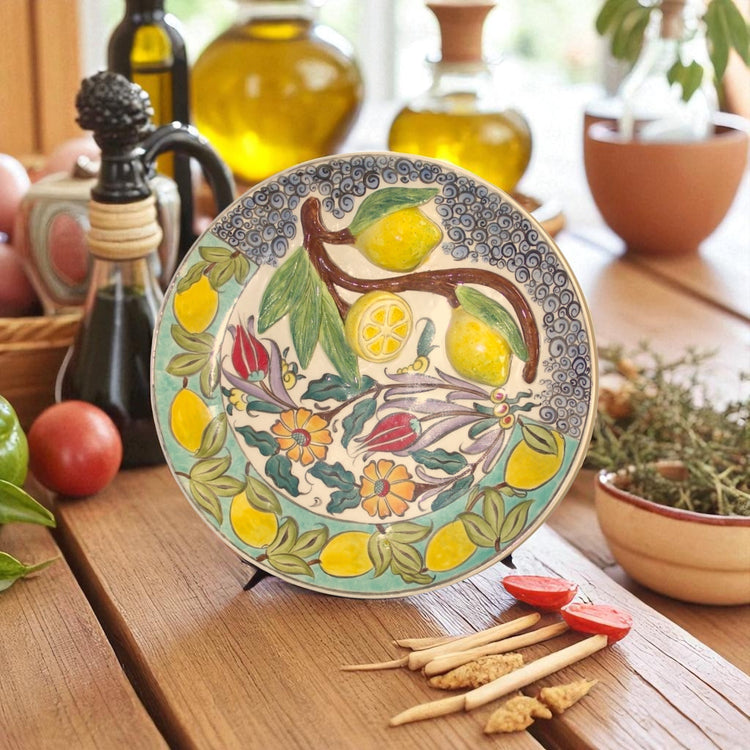В Сицилия лимоните не са просто плод, а част от културната идентичност. Те са символ на радост, гостоприемство и жизненост. От векове майсторите от Сиракуза създават керамика, в която вплитат цветовете и ароматите на своята земя. Релефът на лимоновите клони върху чинията напомня за тези традиции - за ръцете, които оформят глината, и за слънцето, което я изсушава.