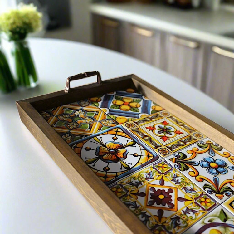 Вдъхновен от тази традиция, поднос „Кордоба“ е отражение на този южен ритъм. Всяка плочка е поставена ръчно, а дървеният обков добавя стабилност и естествена топлина.