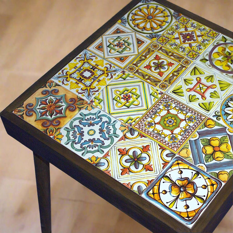 Всеки квадратен сантиметър от тази цветна маса е вдъхновен от андалуските и сицилиански мозайки, а комбинацията от дърво и керамика е символ на занаятчийската устойчивост.
