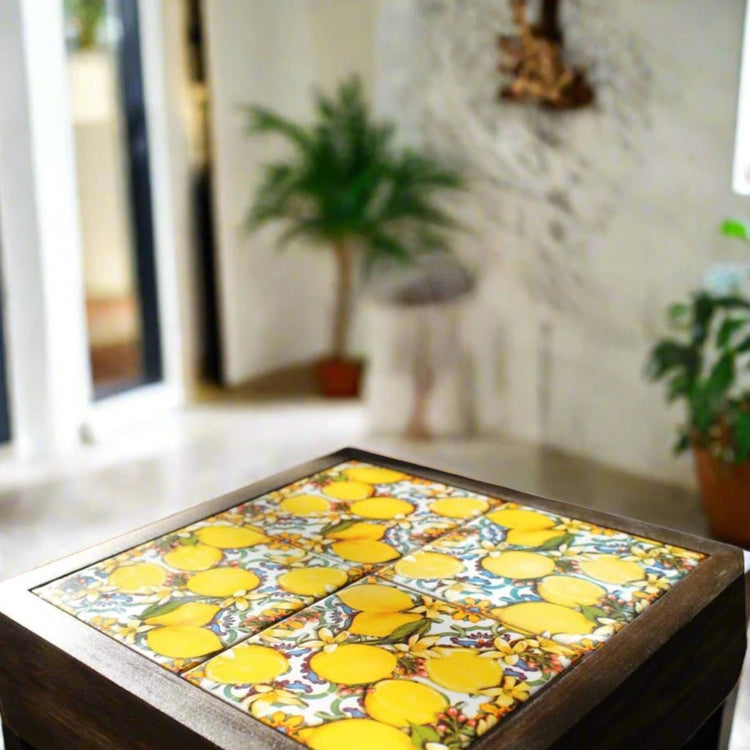 Холна дървена маса с керамични плочки от лимони, създадена, за да бъде сърцето на Вашия дом и сцената на всекидневните ви истории.