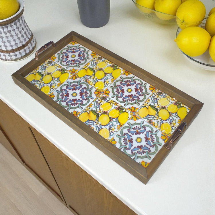 Поднос за закуска и кафе с керамични плочки от лимони - слънчев акцент, който превръща всеки малък жест в празник.